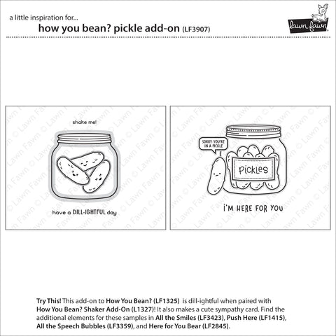 This dill-ightful add-on to How You Bean? will pickle your fancy! It's perfect for whimsical holiday greetings, or whenever you're in a pickle for a card!